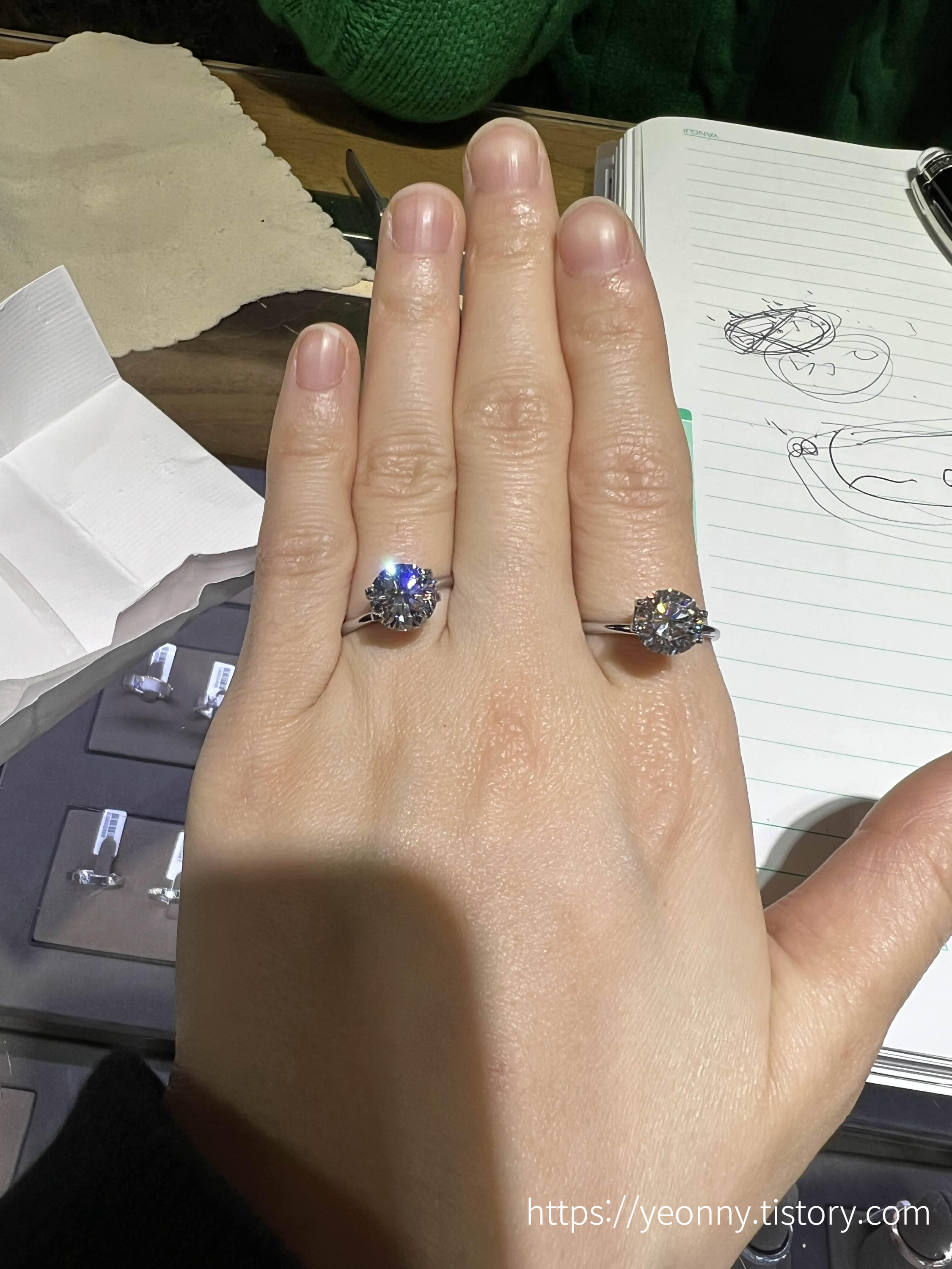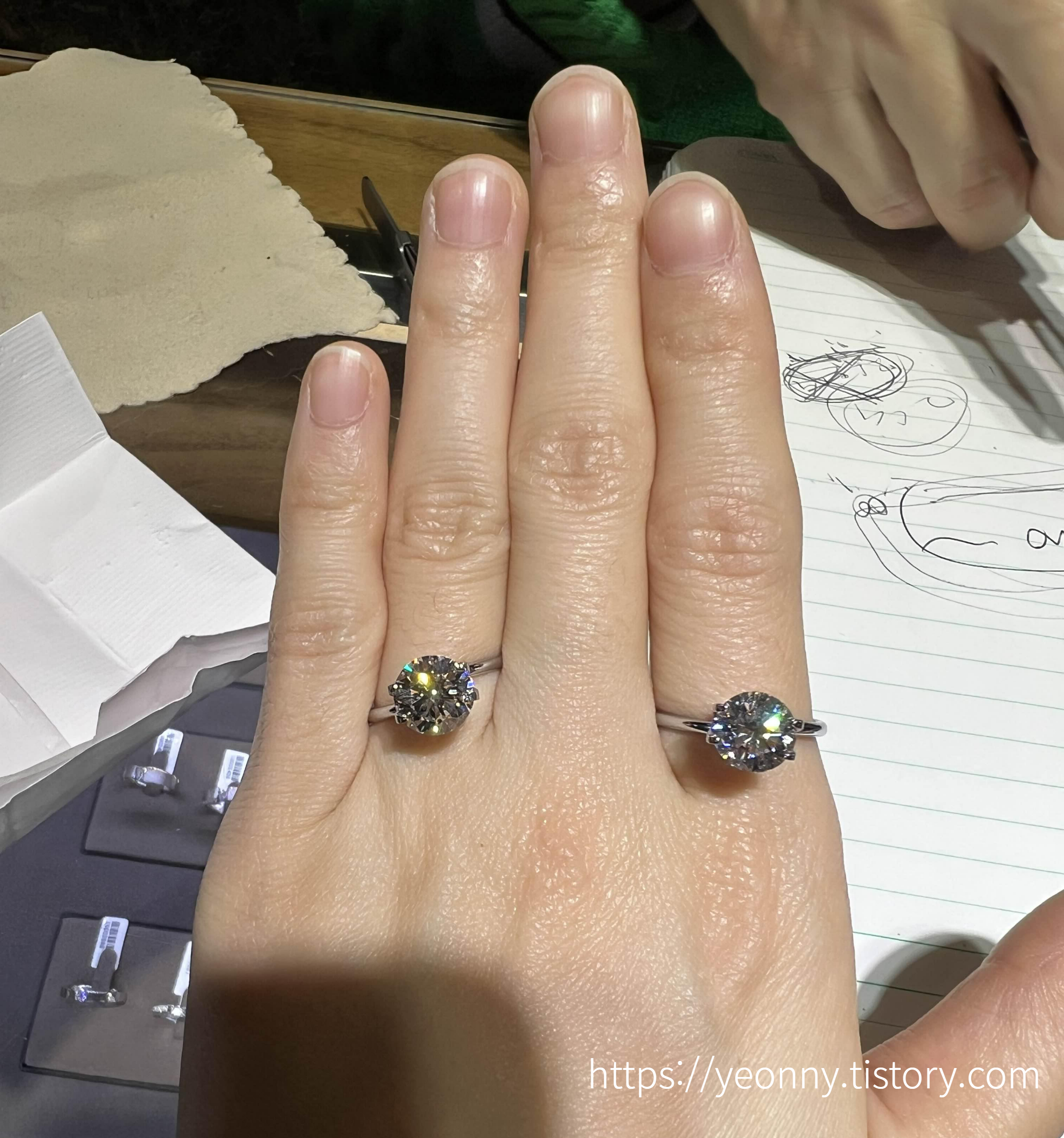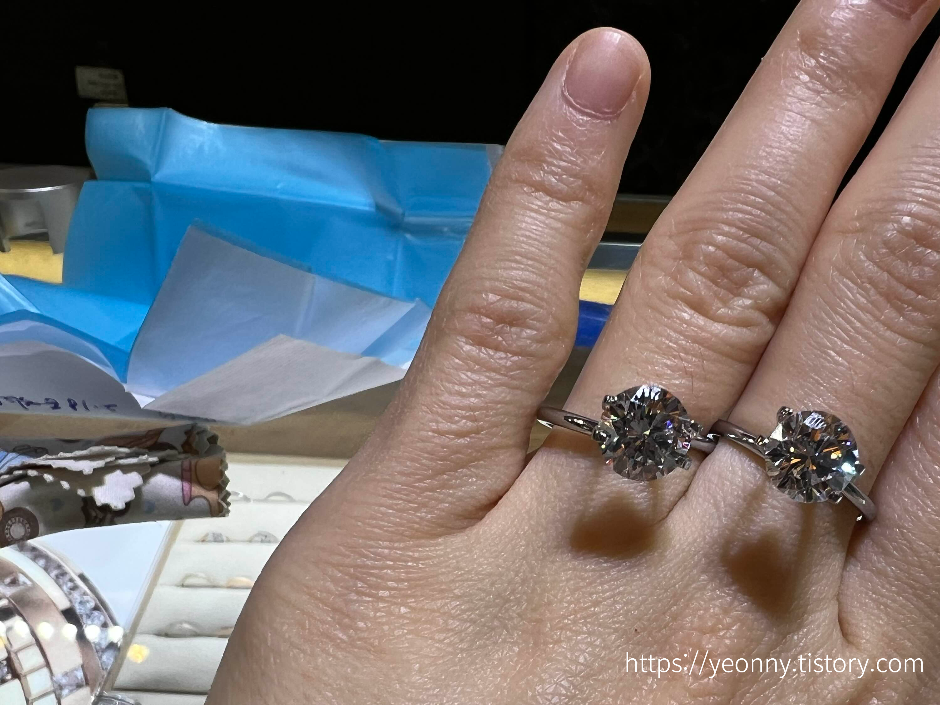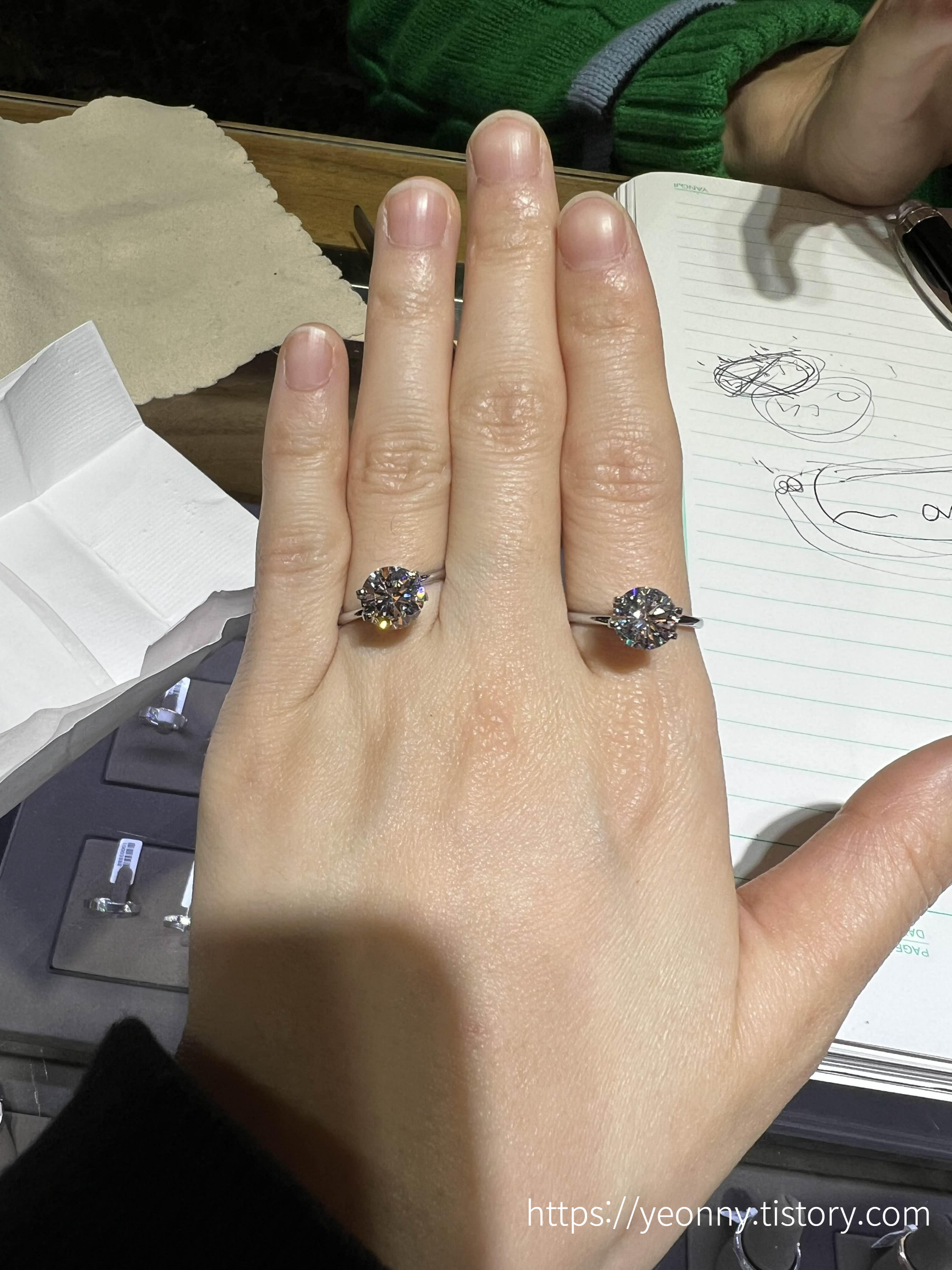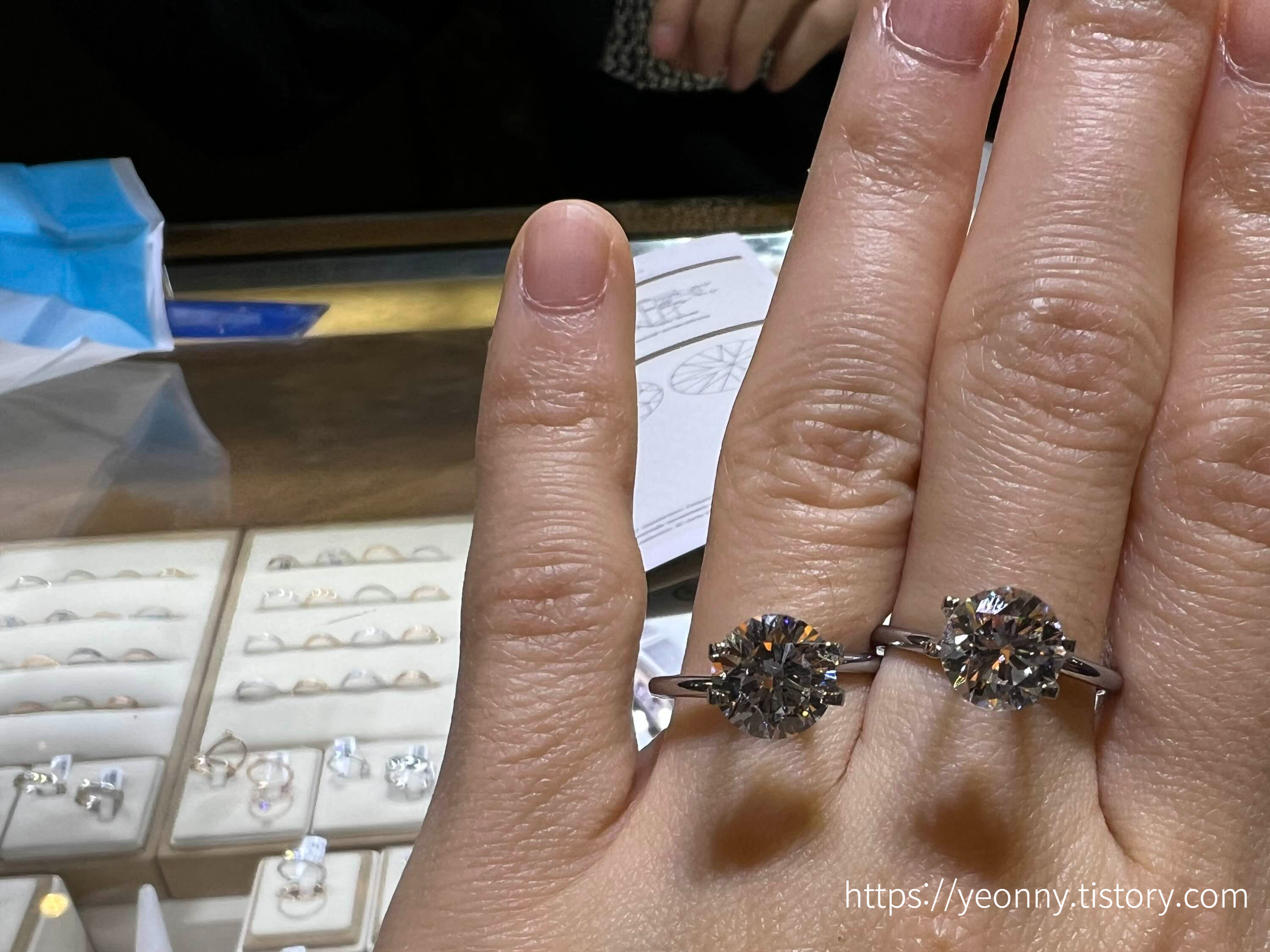 왼쪽은 처음 구매했던 2.18 캐럿, 오른쪽은 내가 선택한 2.03 캐럿