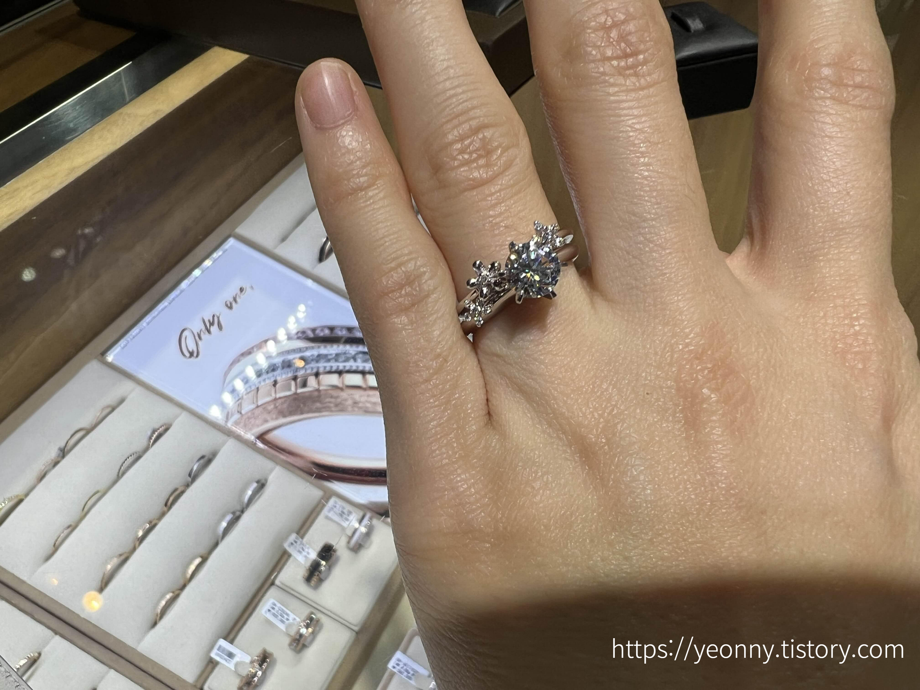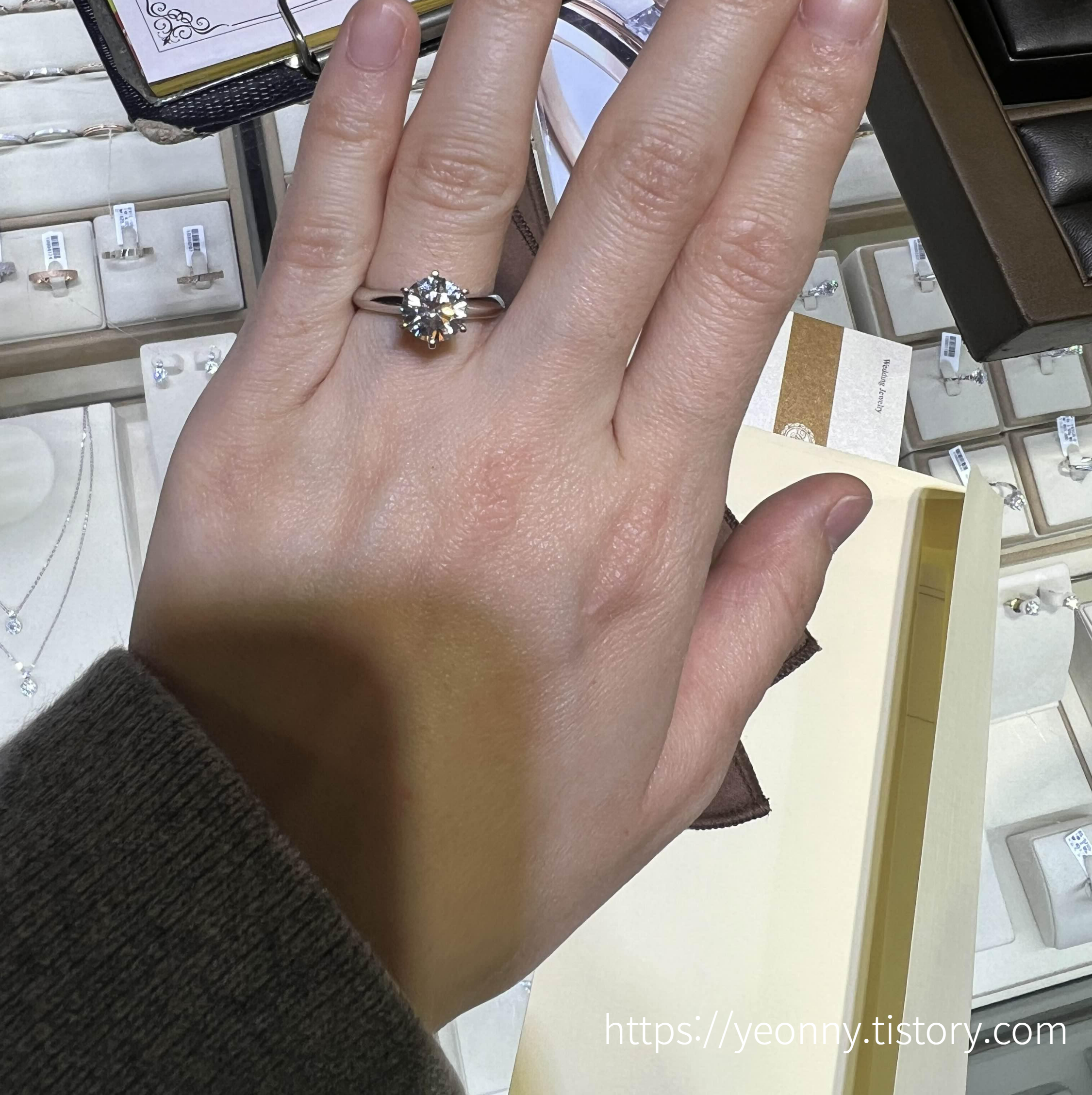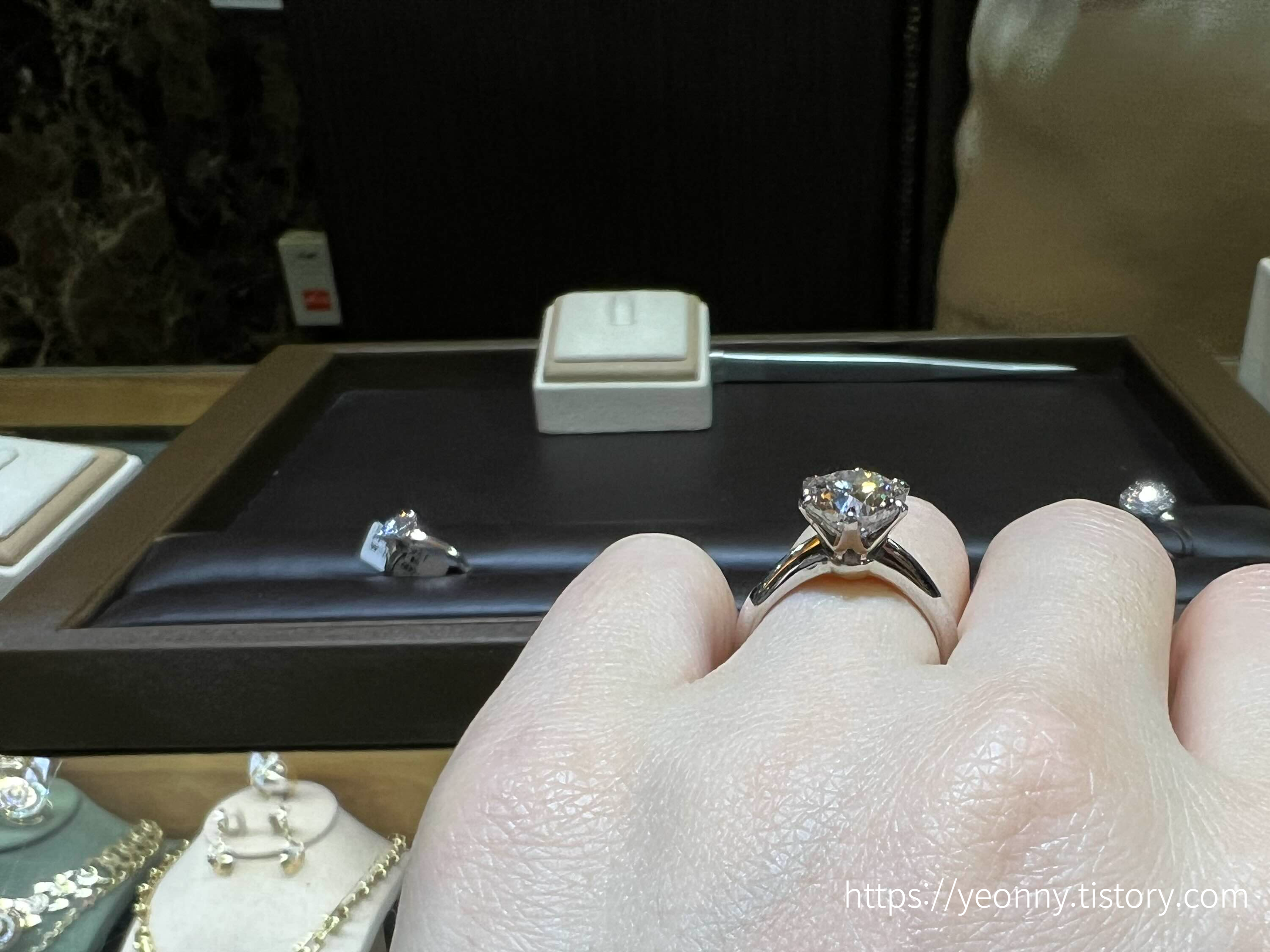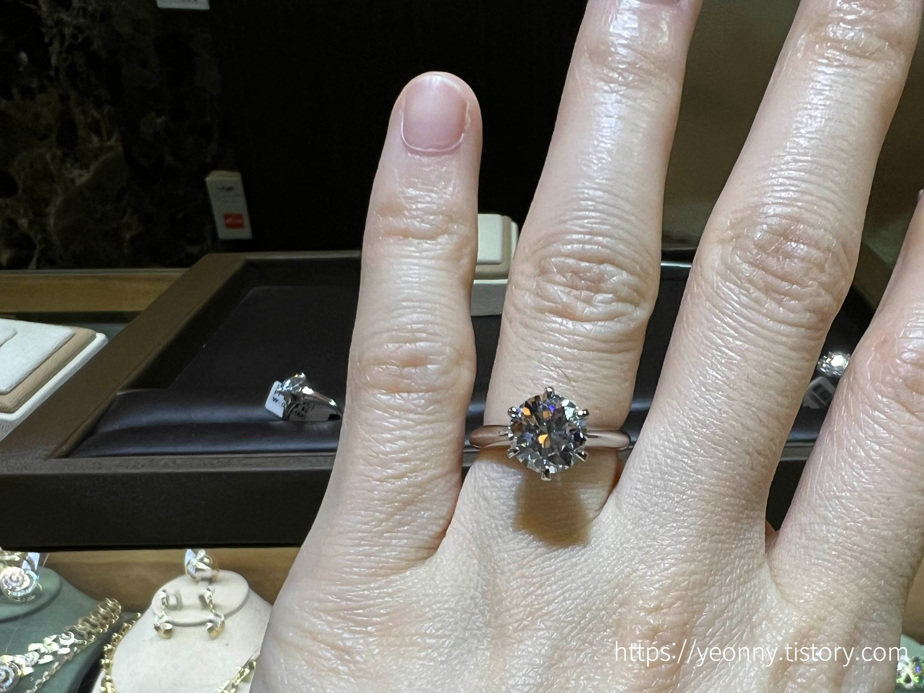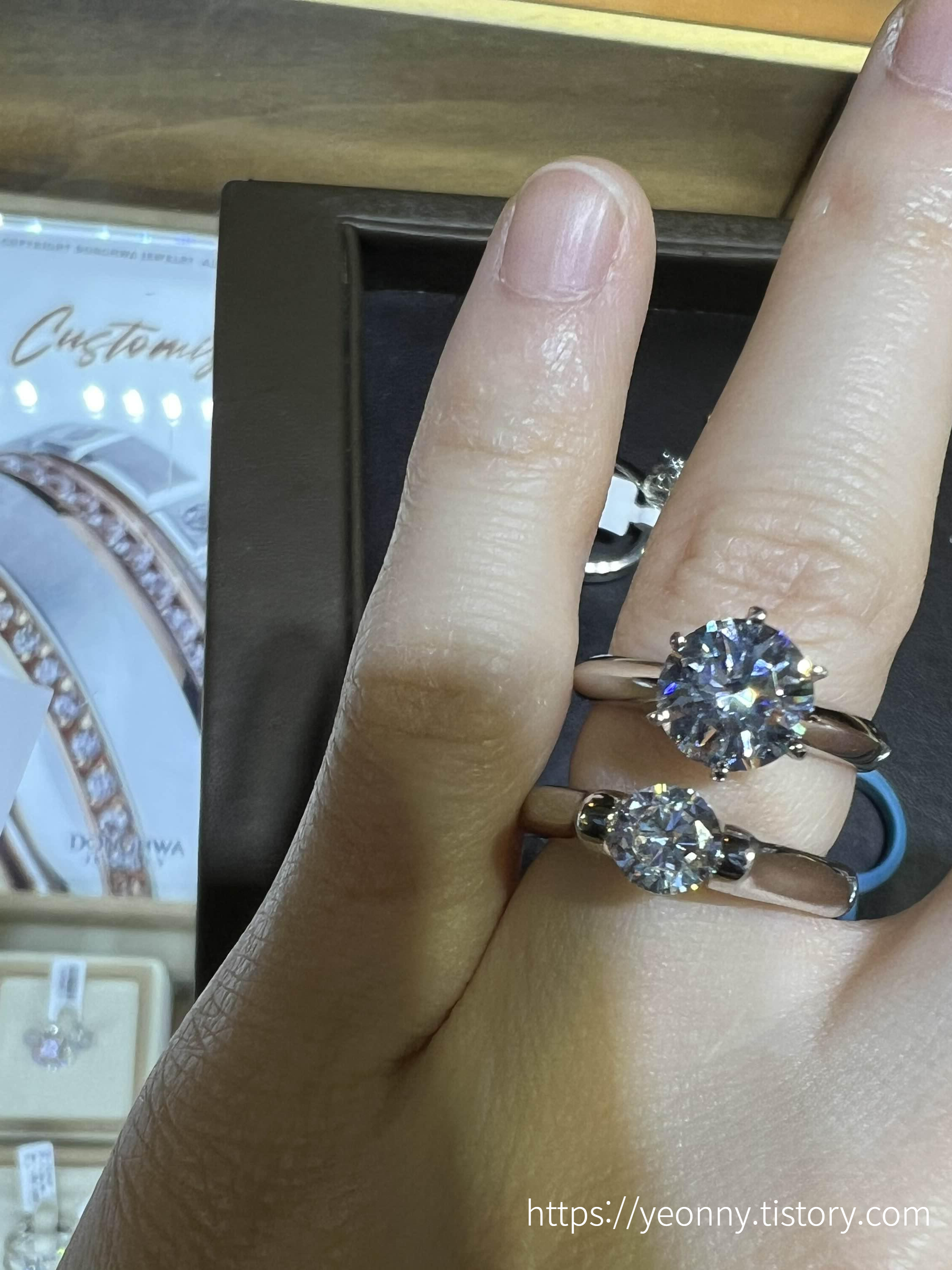1월쯤 가서 동화주얼리의 2캐럿 티파니 세팅 링을 껴봤는데, 역시나 너무 얇았다. 더 두껍게를 요청드렸다.