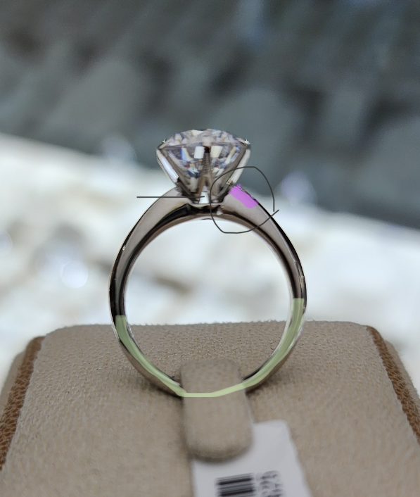 왼쪽을 보면 그냥 평범해보이는데, 오른쪽 사진을 보면 다이아 반지의 옆면이 날렵해서 위에서 봤을때 반지 두께가 굉장히 얇기 때문에 다이아 크기가 더 돋보인다.