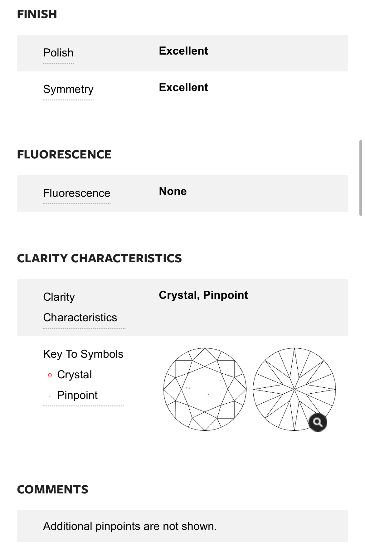 2.03 캐럿은 작도를 보면 가운데에 크리스탈이랑 핀포인트가 있는데 이 작도는 크게 확대한거라 커보이는거지 맨눈으로 안보여서 마음에 쏙 들었다.