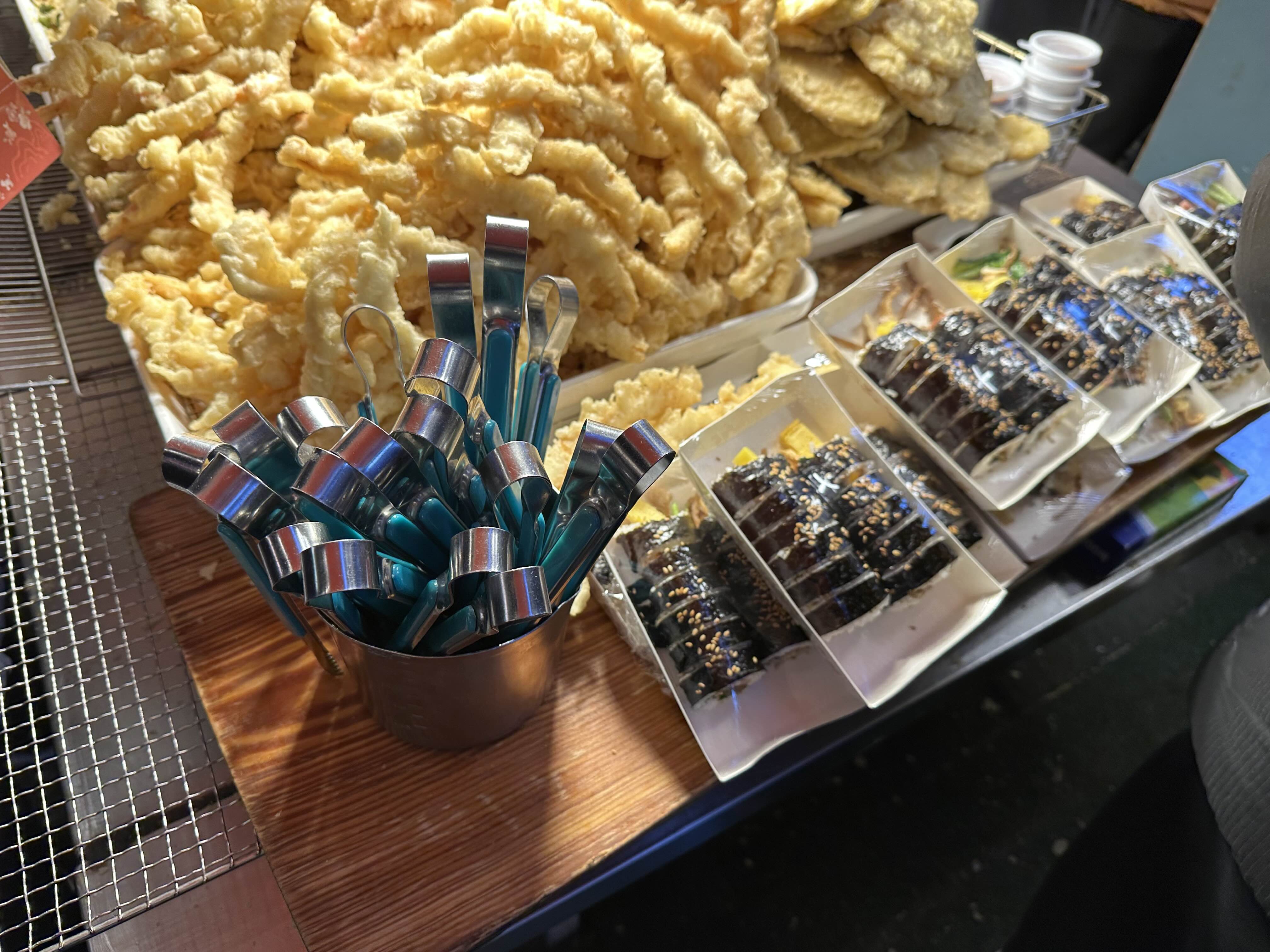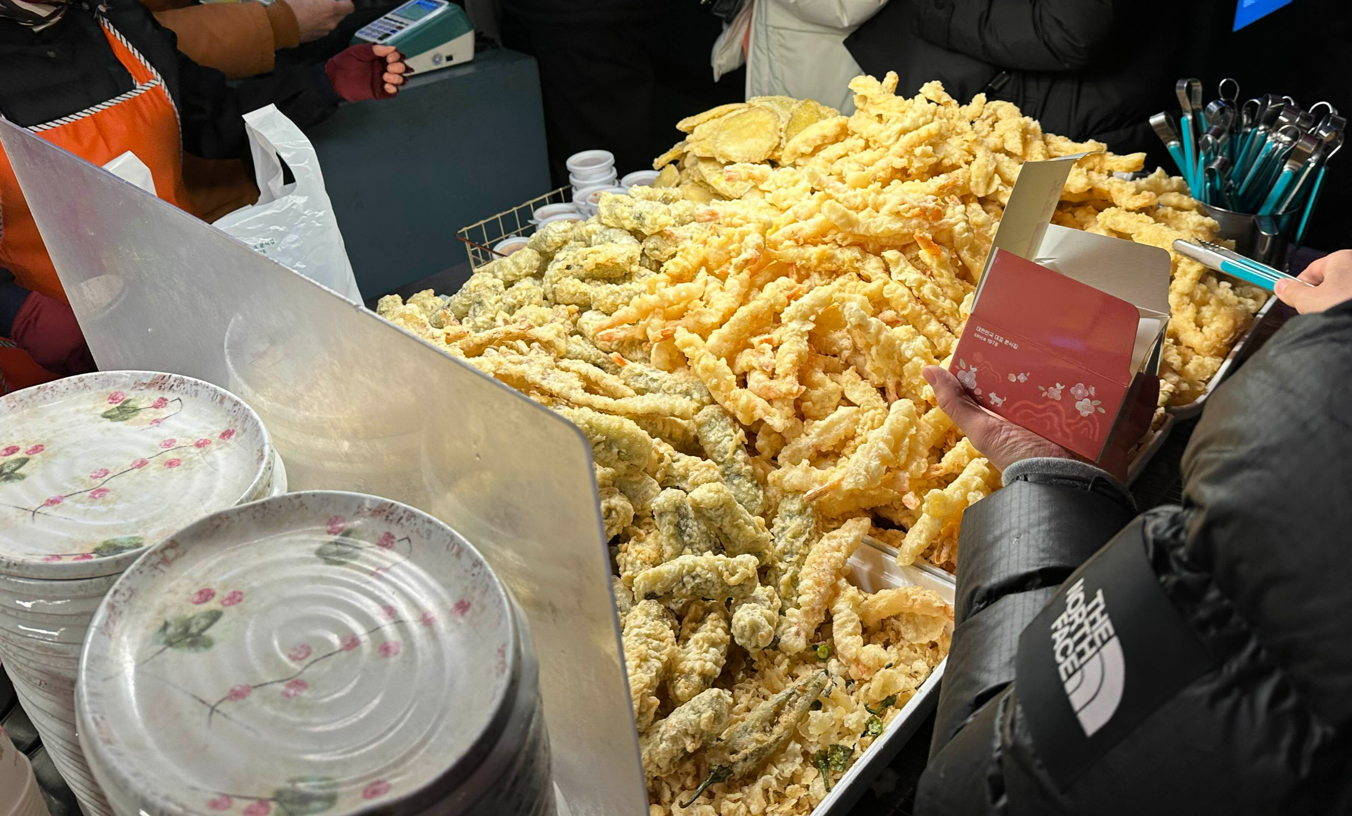 주문 순서는 줄을 서고, 튀김은 직접 담고, 나머지 주문은 카운터에서 하는 거라고 한다.